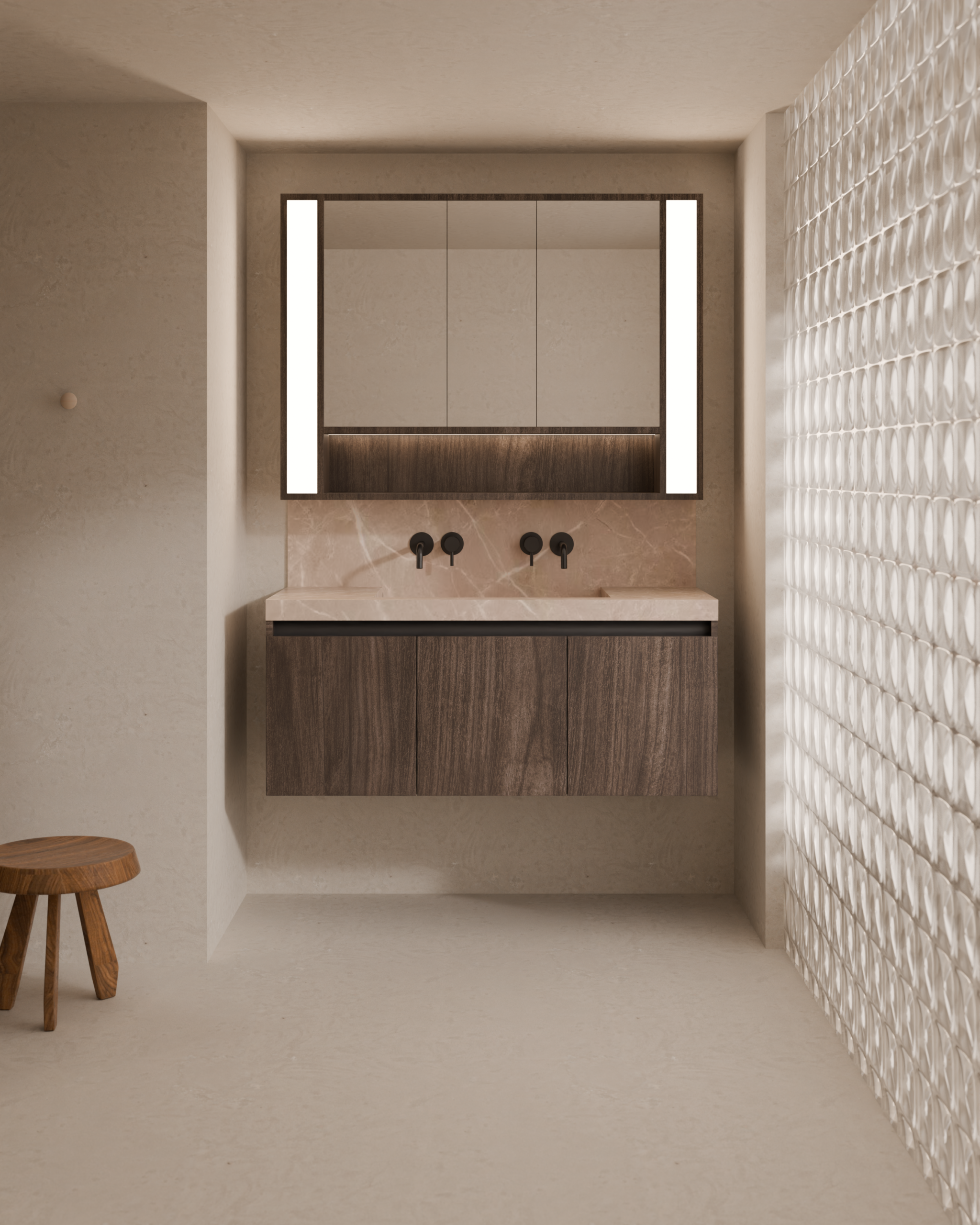 Unlike traditional wood-based materials, AEROFLEX™ aluminium does not swell, warp, or peel when exposed to humidity. This makes it especially suitable for bathrooms, where moisture is unavoidable.